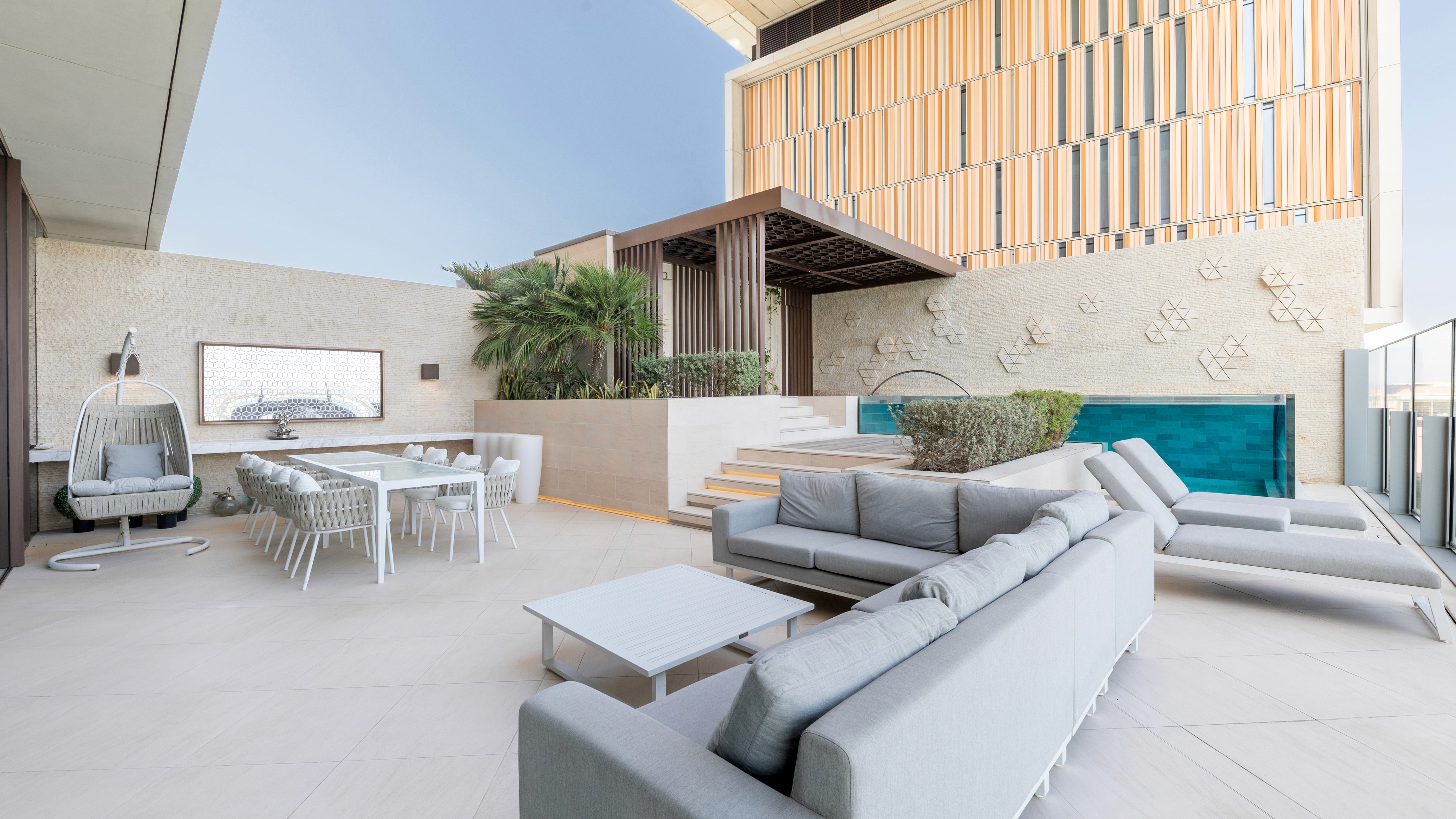 Experience unparalleled luxury at Atlantis The Royal, one of Dubai’s most iconic and sought-after addresses. This exceptional 3-bedroom Sky Court duplex offers a truly unique living experience, combining expansive space, refined interiors, and breathtaking views of the Palm. Designed with a rare and highly desirable layout, the residence features a seamless blend of indoor and outdoor living, highlighted by a private swimming pool and an oversized terrace—perfect for both relaxation and entertaining. Spanning a total of 496 sqm, including a 311 sqm internal living space and an impressive 185 sqm outdoor terrace, the home is thoughtfully crafted to maximize comfort, privacy, and natural light. Fully furnished with premium furniture, high-end appliances, and bespoke décor, this residence is ready for immediate occupancy—offering a turnkey opportunity in one of the most prestigious developments in Dubai. Whether as a primary residence or a high-value investment, this Sky Court apartment represents the pinnacle of branded luxury living on the Palm.
